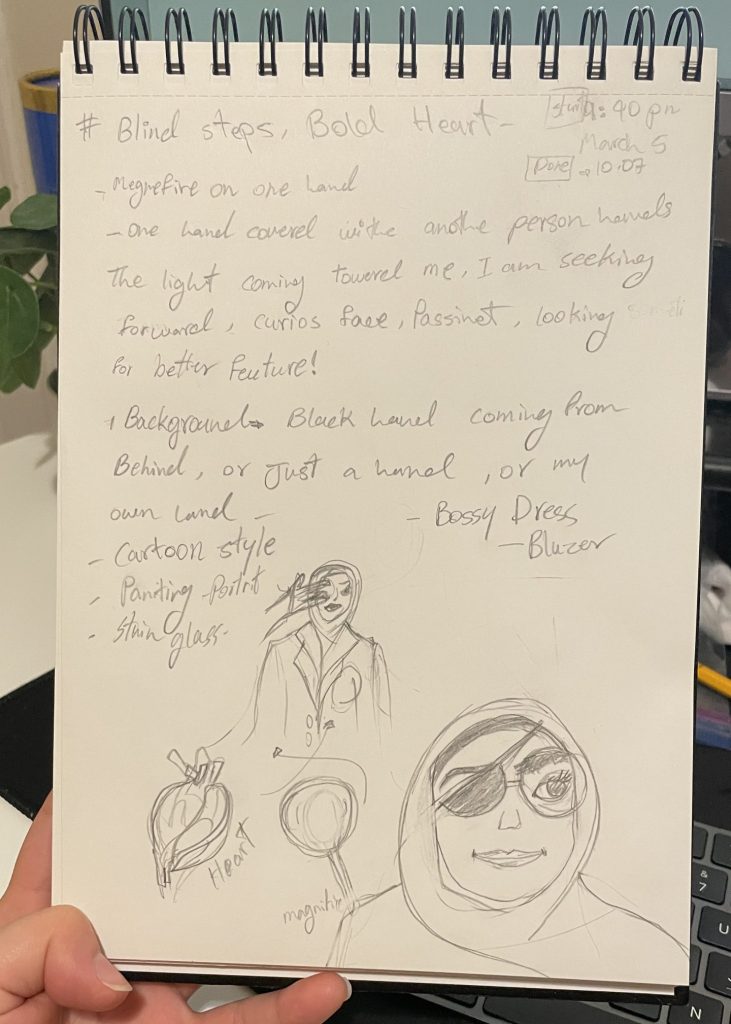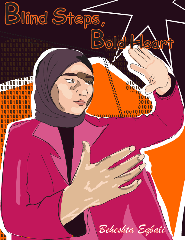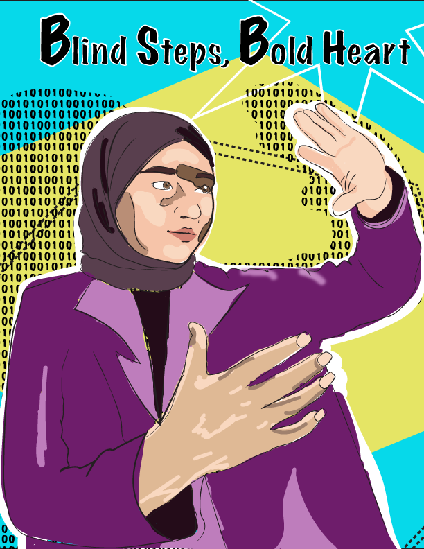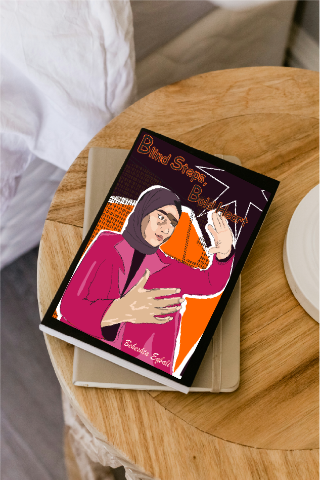 Blind Steps, Bold Heart is a vector portrait and book cover design. This project represents a personal journey of growth, learning, and moving forward despite uncertainty. The cover was designed to visually communicate ambition, resilience, and curiosity through symbolism, color, and composition. he tone was intentionally calm, clean, respectful, and educational, avoiding heavy or aggressive visuals.